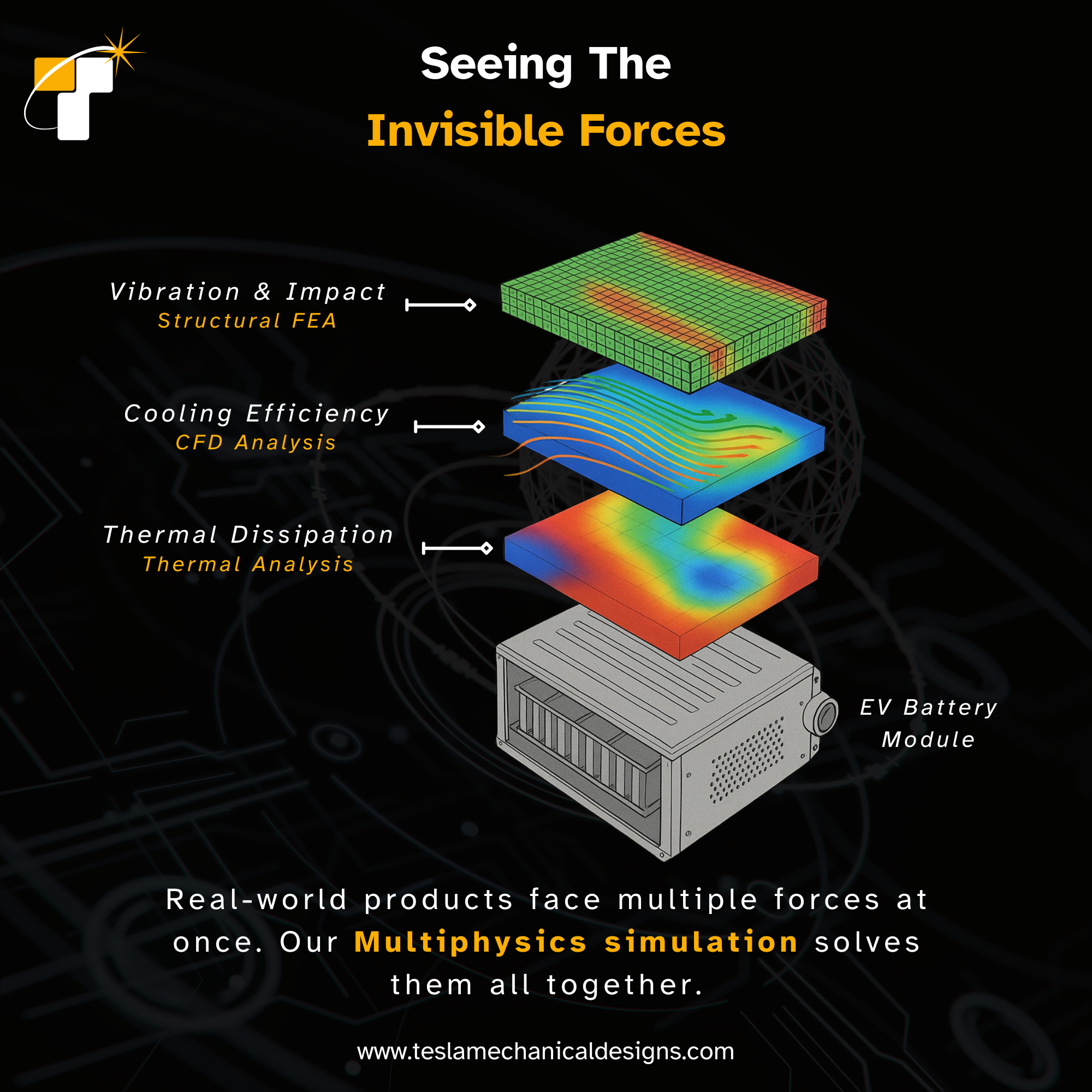 To address this, Tesla Mechanical Designs has deepened its expertise in Multiphysics Simulation. This holistic approach allows the team to analyze concurrent stresses, ensuring that a solution for one problem does not create another.