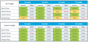⦿ China Market forecasts strong airfreight activity in Hong Kong and North China, particularly for US-bound routes, whereas ocean freight remains relatively stable with modest seasonal adjustments.